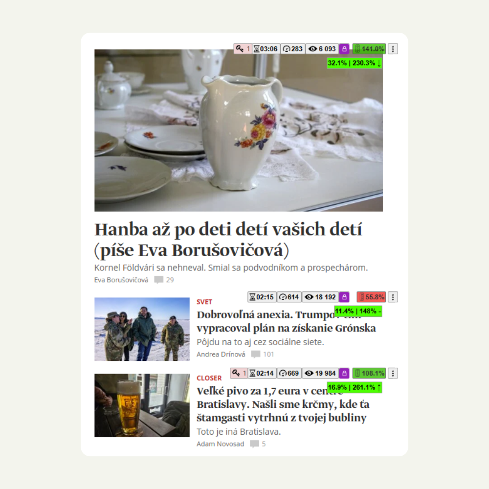 The problem is either in the frequency with which we look at the data, in its presentation, or both. For now, however, we are stuck and it feels impossible to create even a simple data-based experiment for our content. If you have an idea how to solve this, let me know at ondrej.podstupka@sme.sk, and I will include it in the next edition of the newsletter.